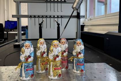 On St. Nicholas Day on December 6, we surprised our employees with a chocolate Santa Claus – as a small, sweet token of appreciation for their hard work throughout the year. This inspired a humorous photo: the chocolate Santas are being measured on the measuring machine, just as if they were passing through one of our precision components.